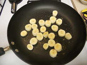 I didn't use enough cooking spray (I used regular vegetable oil spray that we have on hand), but the bananas still fried up nicely. I didn't flip over until maybe about 4-5 minutes to really get the brown you see in the picture on the Cron's website. I checked around 3 minutes but it was more on the golden brown side. Might need to put the heat up more for next time. The family likes cinnamon so you can see that I didn't exactly measure it out. :) I just sprinkled straight from the container. Sigh, yes, I realize now I should've used a different color bowl for a recipe like this to really show the food.
